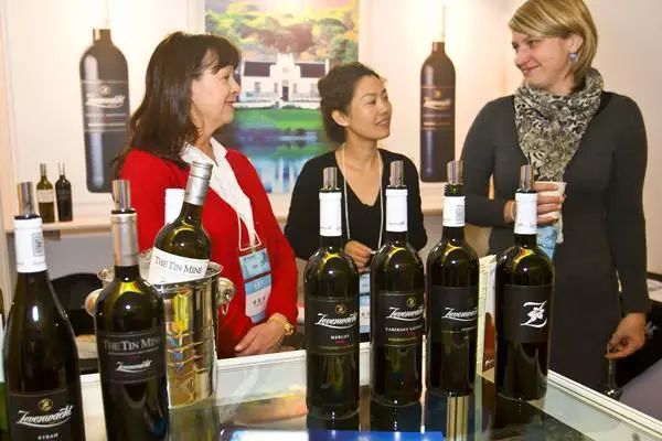 2011年11月24日,参观者在北京展览馆举行的南非商品展上了解南非葡萄酒。(新华社记者赵冰摄)