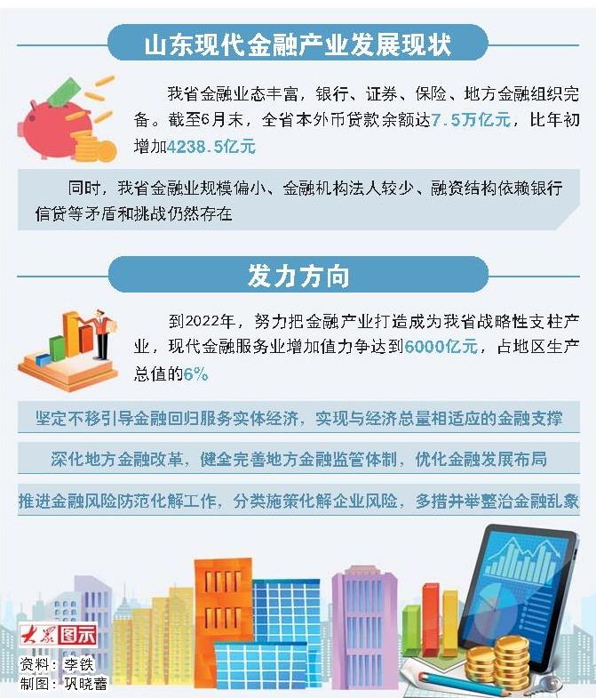 金融改革离不开对金融体系、金融市场、金融机构的顶层设计。记者从省金融办获悉,《山东省现代金融产业发展规划(2018-2022年)》已编制完成,提出了到2022年建设金融强省的总体目标。