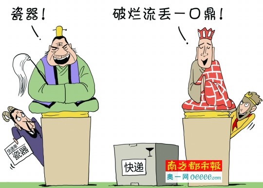 快递?我没听错吧?680万的鼎,不亲自护送一趟,就像淘宝卖家一样,用快递发个货?是的,谭先生就是这样任性,然而不幸的是,快递箱到深圳后,打开一看,青铜鼎坏成一块一块了!