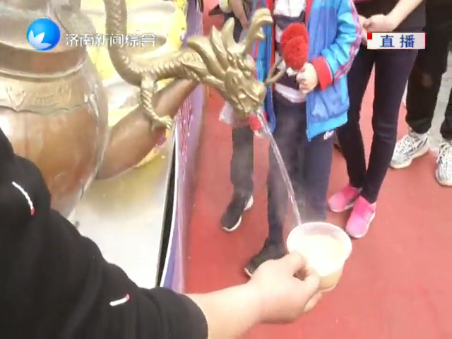 上海游客岳静:“我们利用清明假期,全家第一次来济南玩,正好来尝一下你们济南的特产——茶汤,味道不错。”
