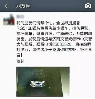 18日9:30,警方全城布控,并欢迎知情人提供线索。10:00左右,网友在朋友圈晒出疑似肇事车辆停放在一开放式小区。10:30左右,警方在小区内找到车头损坏的肇事车辆。11:00左右,警方电话联系肇事司机,告知其如不投案后果严重,肇事司机遂投案自首。12:27,市中交警大队通过其官方微博发布案情通报,称嫌疑人鲁某已归案。肇事司机鲁某今年28岁,在济南居住。至于鲁某事发当晚为何冲撞警车,警方称由于正在调查,不方便透露。