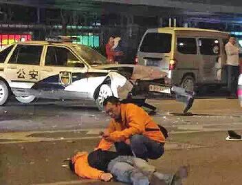 事发当晚23:30左右,济南市中交警正在下桥口检查酒驾。一辆轿车突然从高架桥上冲下,在即将被警察查住时加大油门,径直撞向下桥口鸣笛的警车,瞬间警车被撞向一边。警车车头损毁严重,1名执勤交警和附近的4名群众受伤。肇事司机并未刹车,而是加大油门逃逸。随即,微信朋友圈发布消息,寻找RG516L银灰色雪佛兰轿车。