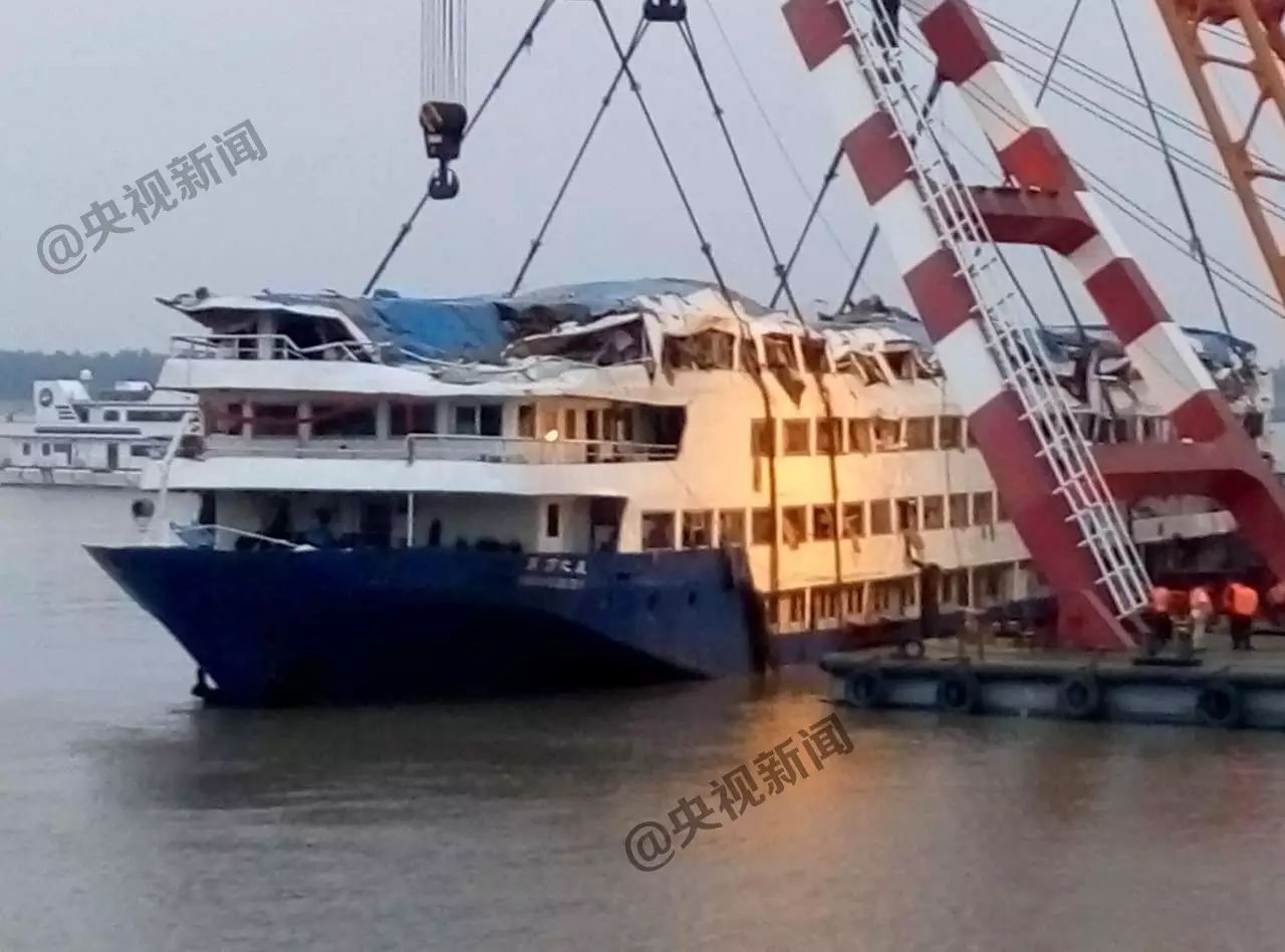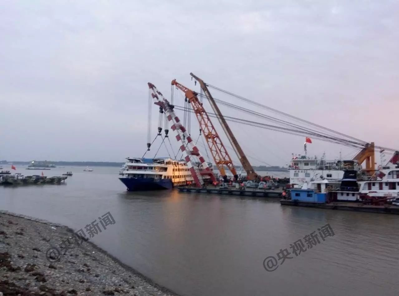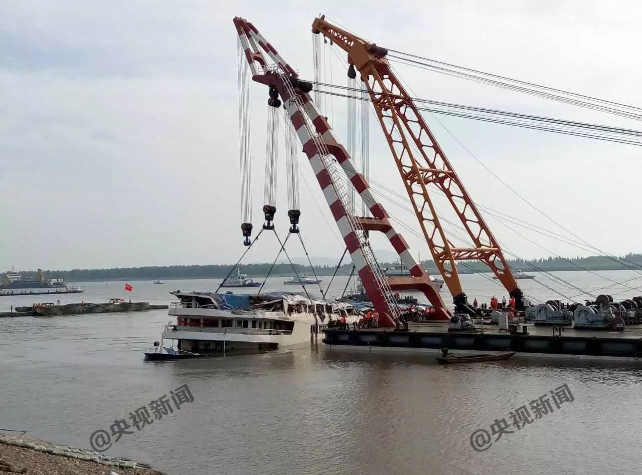5日上午被扶正的“东方之星”号客轮,在经过更换钢缆后,16时15分许被两艘起吊船缓缓提升。目前,船体已经大体浮出水面。截止晚上7点,已经四层浮出来。下一步,救援人员将开展起浮打捞、搜寻遇难人员等后续工作。