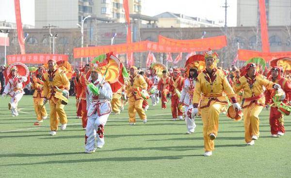 2月21日,正月十四,济南商河全民健身广场,商河第36届鼓子秧歌汇演隆重举行。来自各乡镇15支代表队给观众带来精彩的鼓子秧歌表演。现场观众“人山人海”,为了看清表演,有些大人和孩子爬到附近高楼、篮球架,足球架上看表演。