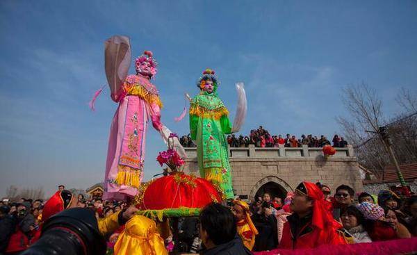 2月21日,山东省章丘市有着千年历史的古村落三德范村10个巷子组织的31个社火队进行民俗“拌玩”巡游过大年,欢天喜地闹元宵。