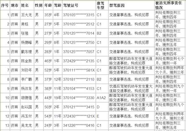 山东公布第三批终生禁驾名单:191人上榜 济南21人