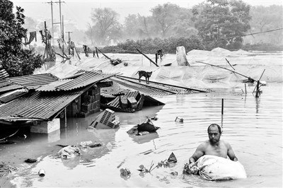 一位村民从被淹的房子中打捞生活用品 供图/东方IC