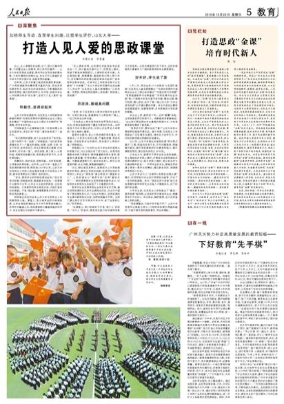 10月20日出版的《人民日报》05版刊发《加强师生互动、直面学生问题、注重学生评价,山东大学——打造人见人爱的思政课堂》为题的文章,点赞山东大学推动思政课改革创新。全文如下: