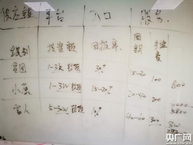 李先生告诉记者,投资3000元以内的,是“贫困”级别,回报率30%;往上,是“小康”级别,回报率15-20%;再往上,投资5-30万叫做“富人”回报周期更长,回报率更低。按照他们的说法,这样就是富人帮助穷人的新经济模式。“现在有400多万会员,所有的钱都在会员自己手中流通。你可能现在还不是很明白这个新的经济形势,可以先做,一边做一边学习,慢慢就了解了。”
