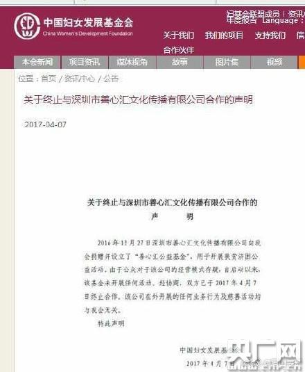 中国妇女发展基金会发表声明