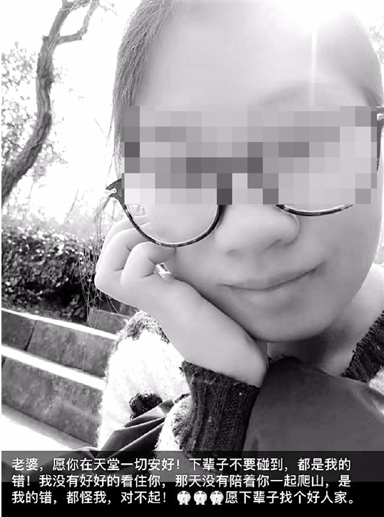 “都是我的错,我没有好好看住你,那天没有和你一起爬山,对不起!”3天后等来噩耗,赵先生自责得无以复加,他曾陪妻子两次来龙山游玩,谁知妻子单独出行时,却遭遇意外。