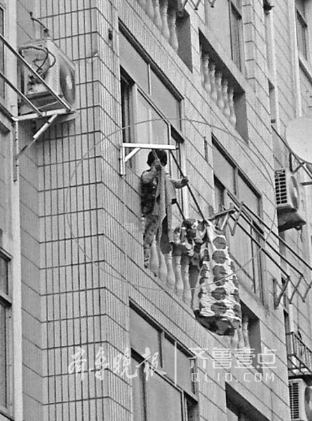 消防人员发现,事发地黄岛区康大金海园是一处老旧小区,救援车根本无法开进小区内。此时,女孩身上只穿着单薄的内衣,双脚踩在三楼窗沿下窄窄的凹陷处,双手紧握住晾衣架,而晾衣架也已在她坠落时被砸弯,随时都有折断的可能。