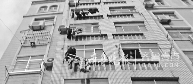 小女孩意外从四楼家中坠下,卡在离地面9米多高的三楼晾衣架上。