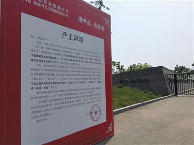 据港中旅海泉湾保安介绍,售楼处目前并未对外开放,外人不能进入,门前立这个声明,是因为已有一些购房者受骗上当,甚至还有人向不法二手中介交了购房款。