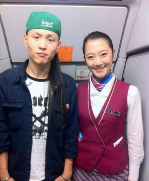 另一位好声音,舞台上狂野的张玮,现在很安静,空姐不淡定。