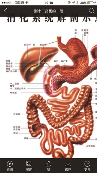 王先生体内的笔长约12厘米,位于十二指肠球降部。昆山中医院消化内科主任徐宏伟介绍说,这个笔从口中吞下,经过了食管、胃、幽门,到达了十二指肠,其中有一支笔的笔尖已经戳到了肠壁,由于十二指肠长度和一支笔的长度差不多,笔无法再向下滑。