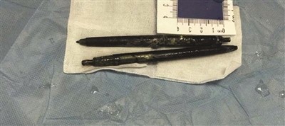 5月4日,昆山市中医院接治了一名中年男子,该男子肠胃中检测出大块异物,竟然是他36年前与朋友打赌而吞下的两支圆珠笔。幸运的是,医生仅用三十多分钟就将其体内的两支笔取出来了,而这两支圆珠笔并未对该男子的身体造成很大的伤害。医生也提醒广大市民朋友,吞下异物后,万不可心存侥幸,一定要及时就医将异物取出。