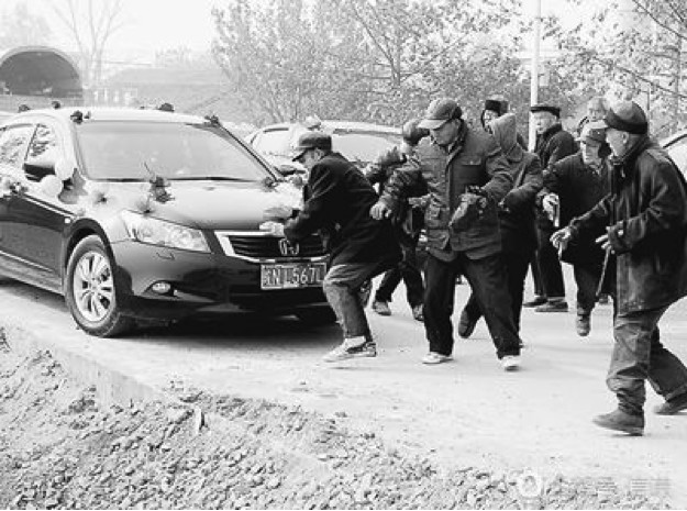 7月20日,山西省吕梁市的一列婚礼车队在行驶中遭遇拦截,数名不明身份的当地老人拦在豪华婚车前讨要喜钱,获得少量金额后,老人们仍不愿离开,使得整条道路也因此陷入长时间的拥堵。