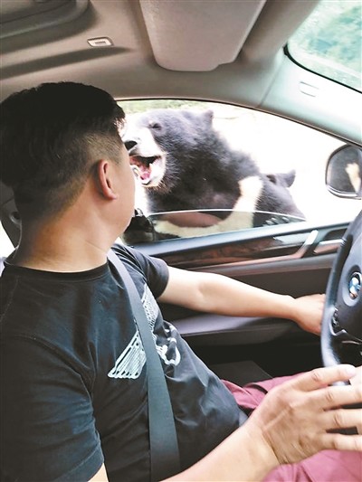 八达岭野生动物园的一只熊扒上陈涛的车窗