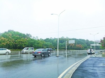 马路中间立着一根路灯杆记者孙笑天 摄