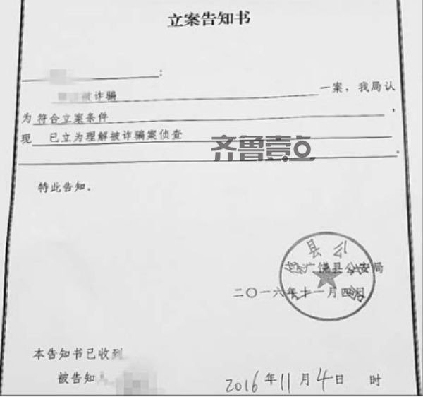 警方立案告知书